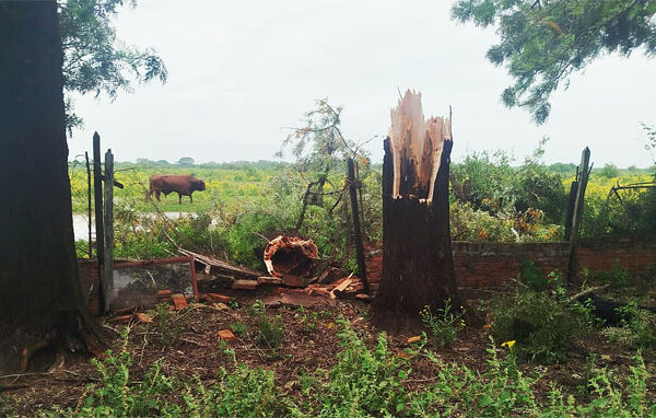 Tiempo de lectura aprox: 19 segundosEste domingo por la madrugada, en distintas zonas rurales de Tres Isletas, Pampa del Indio, General San Martin y Este de Castelli, sufrieron el paso de una tormenta que llegó con fuertes vientos que derribaron arboles y postes de energía eléctrica, como también voladuras de techos, y afectación a lotes de girasol y sementera baja el granizo. Así quedó este tinglado en La Rinconada (Tres Isletas) con el paso de la fuerte tormenta Al norte de Pampa del Indio, el fuerte viento provocó caída de árboles- También en zona de San Martin, el granizo destruyó sementera baja
