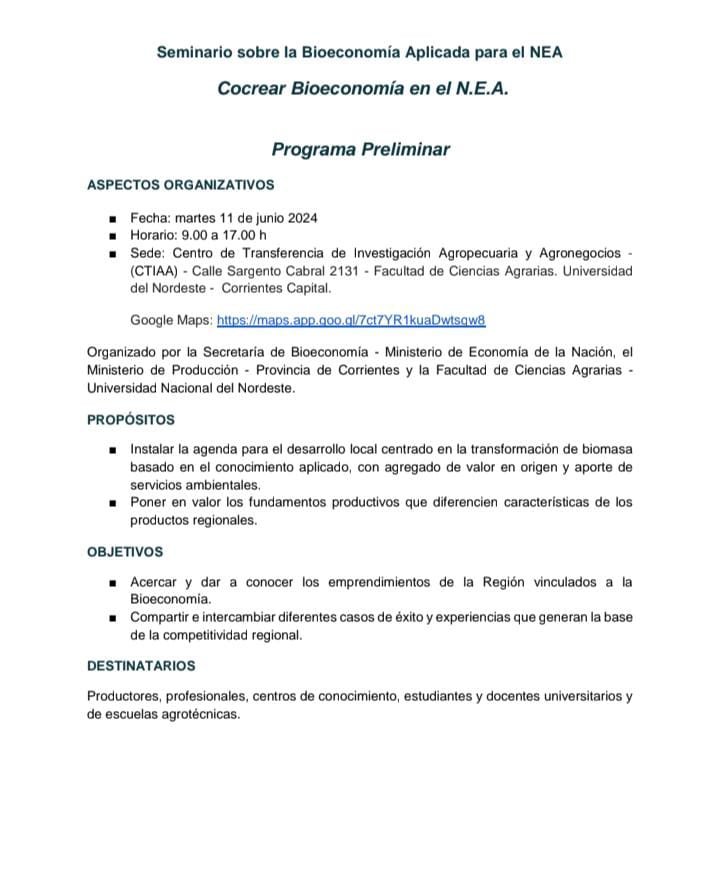 Organiza: Secretaría de Bioeconomía- Ministerio de Economía de la Nación, el Ministerio de Producción- Provincia de Corrientes y la Facultad de Ciencias Agrarias-Universidad Nacional del Nordeste.