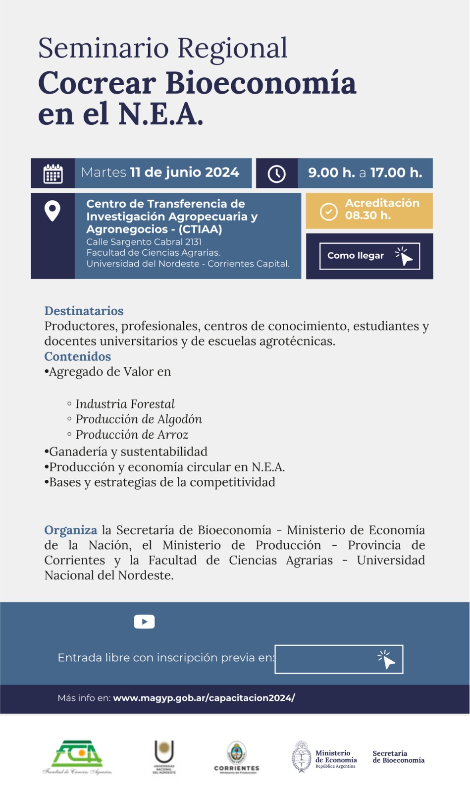 Organiza: Secretaría de Bioeconomía- Ministerio de Economía de la Nación, el Ministerio de Producción- Provincia de Corrientes y la Facultad de Ciencias Agrarias-Universidad Nacional del Nordeste.