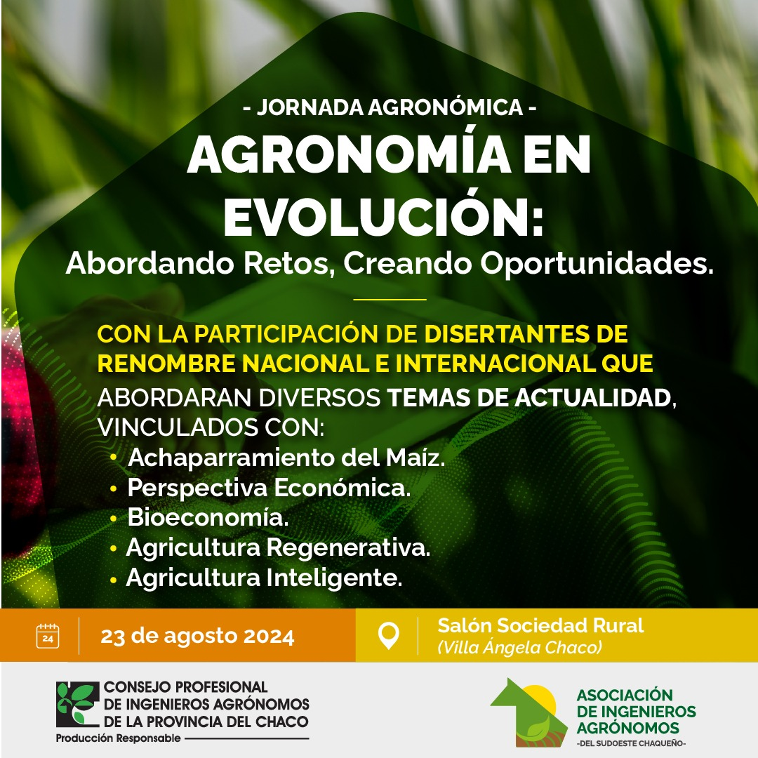 La Asociación de Ingenieros Agrónomos del Sudoeste Chaqueño junto al Consejo Profesional de Ingenieros Agrónomos de la Provincia del Chaco organiza la 44° Jornada Agronómica del Chaco.