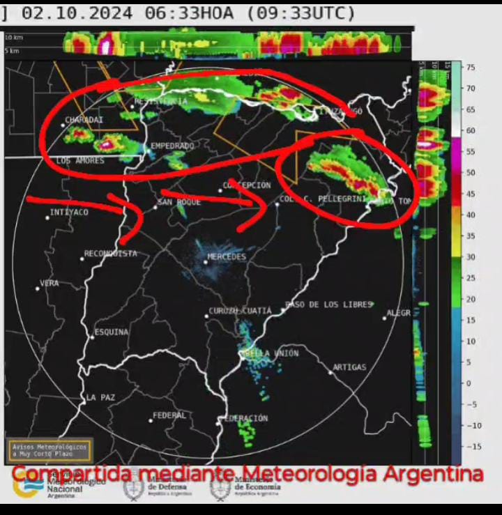 Hacia Empedrado y Santo Tomé se aproximan nubes con gran desarrollo vertical, gran actividad eléctrica y con granizo en su estructura.