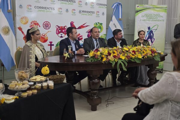 Tiempo de lectura aprox: 1 minutos, 33 segundosLa XXII Fiesta Provincial de la Miel y el Desarrollo Emprendedor se realizará en Saladas, Corrientes, los días 17 y 18 de octubre de 2025. Este evento cultural-productivo representa un espacio propicio para para apicultores, artesanos y emprendedores, con una expo feria, charlas técnicas, espectáculos artísticos, la elección de la Reina Provincial de la Miel y actividades educativas para el público. En conferencia de prensa realizada este miércoles en el Salón Verde de Casa de Gobierno dieron a conocer detalles de la tradicional celebración de carácter cultural, productiva y turística. Estuvieron presentes el Intendente de Saladas Noel Gómez, el subsecretario de Promoción e Inversiones Turísticas Augusto Costaguta, el secretario de Producción, Turismo y Medio Ambiente municipal Marcos Ríos, la actual Reina de la Miel y el Desarrollo Emprendedor Ariana Cañete y la Miss Saladas Claudia Ojeda. En representación del Gobierno provincial y del Ministerio de Turismo, el doctor Costaguta se refirió al auge del turismo en Corrientes a partir de este tipo de eventos de gran convocatoria turística por parte de público de otras provincias y de localidades vecinas. “La oferta es muy variada, con jornadas de capacitación apícola y charlas organizadas por el municipio. El intendente Noel Gómez y su equipo han logrado que la fiesta crezca y se afiance en el calendario turístico de la provincia”, destacó el funcionario y agregó: el gobernador Gustavo Valdés y el Ministerio de Turismo apoyan la fiesta y otras actividades turísticas de Corrientes. Por su parte, el jefe comunal de Saladas dijo que la Fiesta de la Miel y Desarrollo Emprendedor se llevará a cabo los días de 17 y 18 de octubre, invitando a toda la provincia a participar en este evento que busca mostrar el potencial del municipio, tanto en apicultura como en desarrollo emprendedor. En relación al desarrollo de actividades detalló que iniciará el viernes 17 con la apertura de la Expo Saladas, a las 16 horas en el Complejo Turístico Municipal, con más de 150 emprendedores. Habrá artesanos, emprendedores y el sector productivo de Saladas y la zona. Desde las 17 horas habrá una jornada de capacitación apícola con disertantes de primer nivel, y a partir de las 21 horas espectáculos artísticos y la elección de la Reina de la Fiesta Provincial de la Miel. El sábado 18, a partir de las 9 continuará la Expo Saladas. Se podrá recorrer, visitar, comprar y ver el trabajo de los emprendedores y artesanos saladeños. Asimismo, continuará la segunda etapa de la capacitación apícola. El intendente Gómez sostuvo que el predio está acondicionado con parrillas y quinchos para los visitantes. Además, quienes lo visiten podrán visitar el Museo Cabral y realizar paseos en kayak en la Laguna Soto. En la noche del sábado, habrá espectáculos artísticos con artistas de renombre provincial y nacional. Fuente: DIP