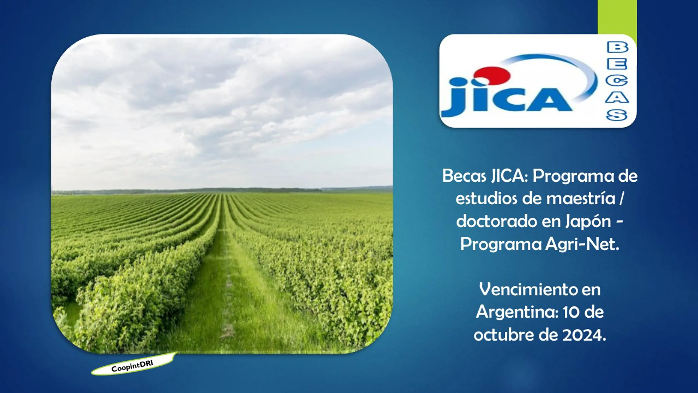 Vencimiento de presentación de aplicaciones: 10 de octubre de 2024 (solicitar formularios de aplicación a JICA Argentina).