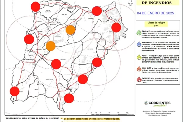 Índice de peligro de incendios para la Provincia de Corrientes.
