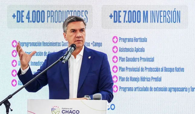 El gobierno del Chaco lanzó el programa “Ahora + Campo”, consistente en una serie de medidas que buscan llevar asistencia y alivio al sector productivo. Beneficiarán a más de 4.000 productores con una inversión inicial superior a los $7.000 millones. Las medidas van desde la reprogramación de vencimientos de los créditos + Campo, a la restructuración de deudas, asistencia a productores algodoneros y apícolas, protección de bosques nativos y desarrollo del Progano, entre otras.