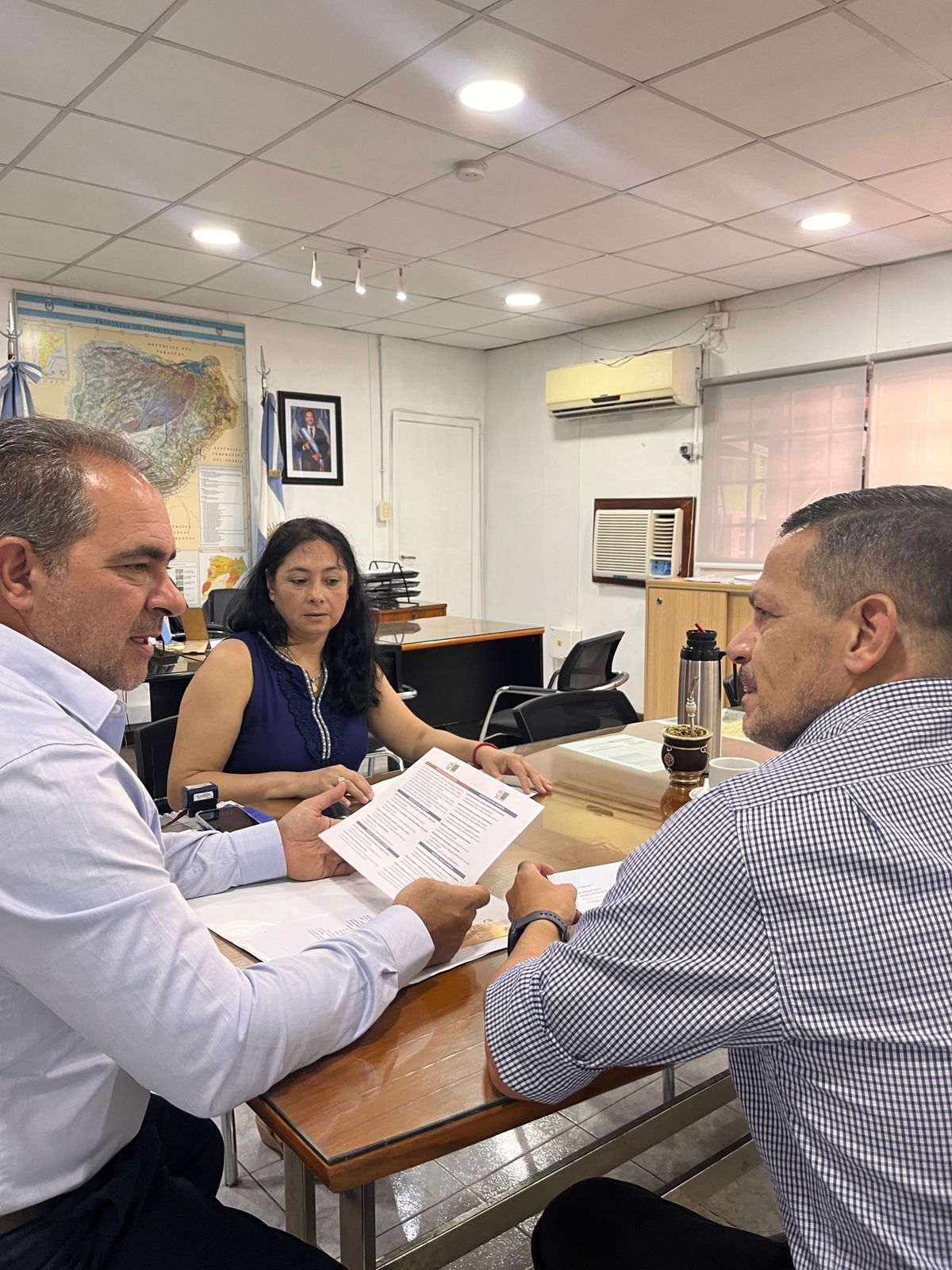 El administrador general del ICAA, ing. agrón Sebastián Perborell, junto a la bioquímica Ana Meza, coordinadora de la Gerencia de Gestión Ambiental, recibieron al especialista Juan Daniel Ruiz Díaz, secretario de Extensión Universitaria y director del Laboratorio de Química Ambiental de FaCENA.