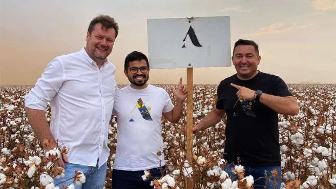 Plantado allí a mediados de 2023 por Pedro Sávio, Henrique Resende y el productor de algodón y presidente del Instituto Brasileño del Algodón IBA, Alexandre Schenkel, el símbolo marca el inicio de Almagrino, una empresa que produce camisas y camisetas.