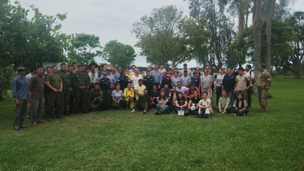 Entre los días 16 y 17 de octubre, se llevó a cabo una importante jornada de capacitación en las localidades de Sauce y Monte Caseros, que reunió a cerca de 100 participantes, entre ellos personal de Fuerzas de Seguridad, Bomberos, brigadistas, técnicos, productores, personal municipal y público en general.
