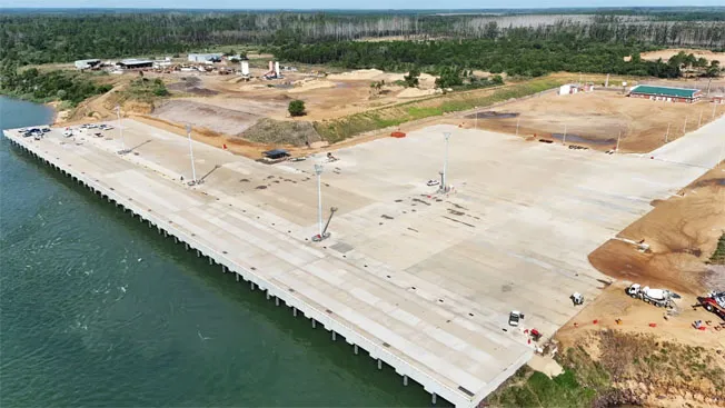 Con las obras civiles prácticamente finalizadas y el equipamiento en marcha, el nuevo puerto contará con una capacidad inicial para operar hasta 2.000 contenedores, con posibilidad de duplicarla a 4.000.