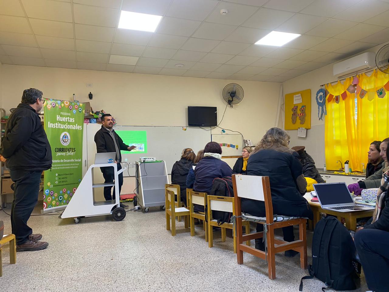El Ministerio de Desarrollo Social de la Provincia se reunió este sábado con directivos y personal de los jardines de infantes de Riachuelo, en al Jardín de Infantes Nucleados (JIN) N°17 «San Cayetano» ubicado en el barrio Cañada Quiroz. En ese marco, el director de Fortalecimiento Institucional de la mencionada cartera, Álvaro Rodríguez, llevó adelante una charla destinada a las comunidades educativas con el fin de ofrecerles que se adhieran al Programa de Huertas Institucionales.