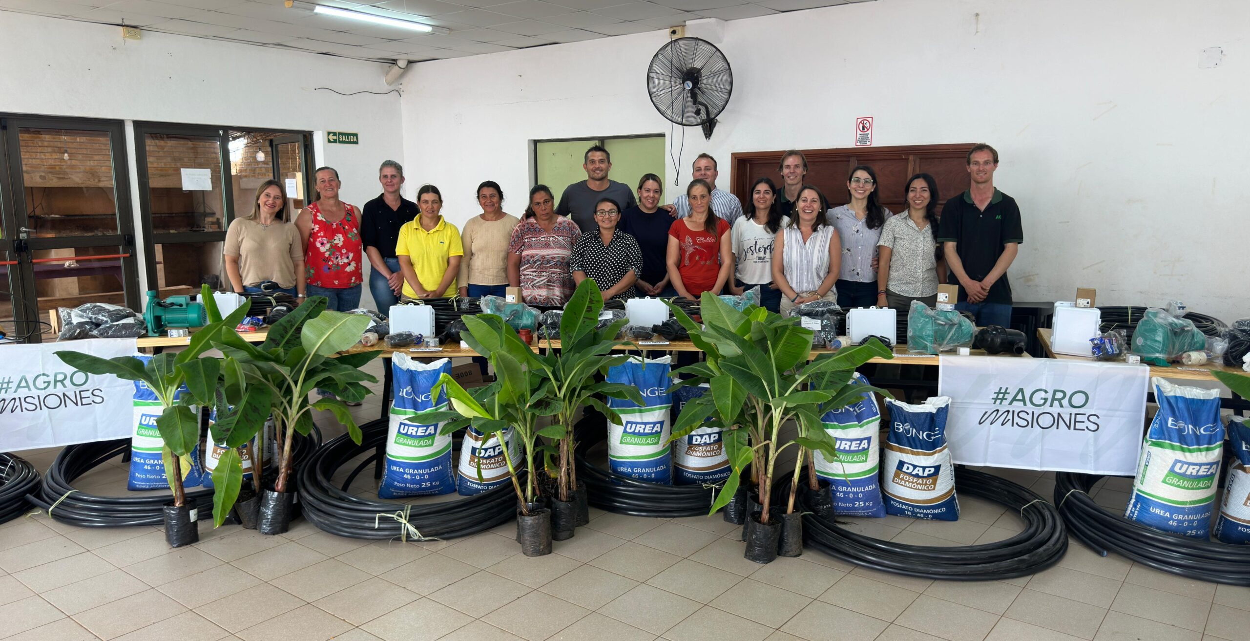 Mediante el Programa de Asistencia Financiera para la Reconversión, Tecnificación y Diversificación, llevado adelante por la Subsecretaría de Desarrollo y Producción Vegetal del Ministerio del Agro y la Producción; se entregaron más de 6.000 vitroplantas de banano de la variedad Cavendish y 240 plantines injertados de palto de la variedad Hass, producidos en Biofábrica Misiones S.A. Además, se otorgaron 20.750 kg de enmiendas, 10.875 kg de fertilizantes y todos los componentes necesarios para los sistemas de riego y fertirriego: tanques, bombas, filtros, gabinetes eléctricos, cabezales Venturi, mangueras y goteros.