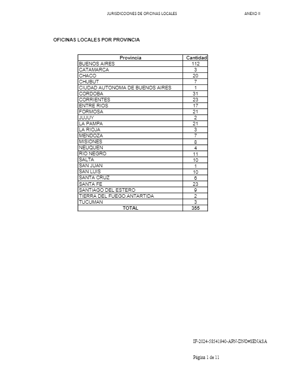 Al efectuar esta reorganización, el Senasa aseguró que la baja de oficinas locales “no afectará la prestación del servicio en los territorios, en virtud de haberse diseñado estrategias a los efectos de garantizar las acciones, los trámites y las gestiones, ya sea mediante autogestión o ante las Oficinas Locales de cercanía, así como las acciones que el mismo Organismo brinda en sus tareas a campo”. De hecho, en el organismo permanecen abiertas otras 355 oficinas, distribuidas del siguiente modo: