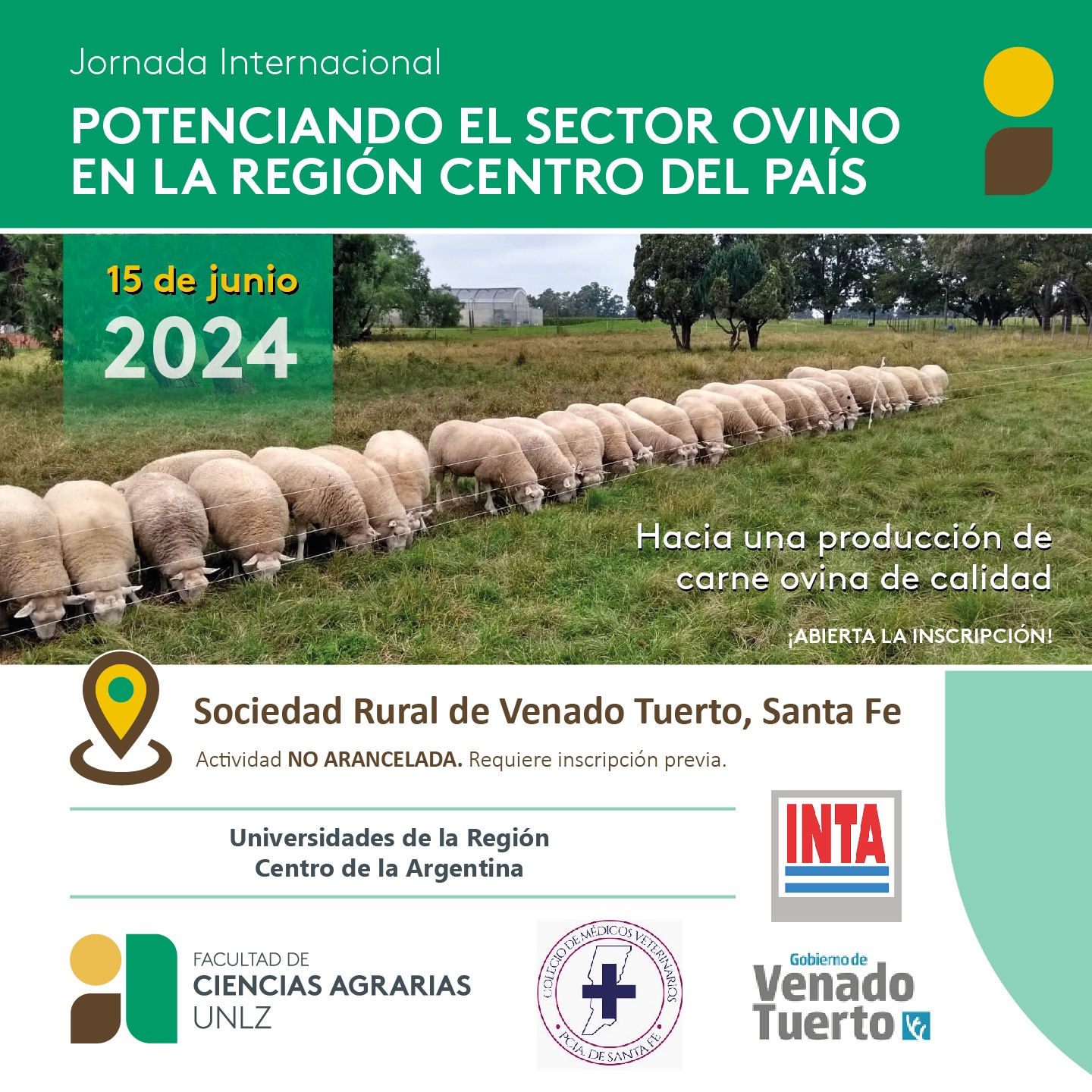 Les compartimos esta jornada que se está organizando en Venado Tuerto, junto con las universidades, instituciones de integrantes de la cadena ovina de la región Centro. Está dirigida a integrantes del sector de Entre Ríos, Santa Fe, Buenos Aires, Córdoba, La Pampa y San Luis, incluyendo a productores y productoras, empresarios y empresarias, industrias vinculadas, escuelas agrotécnicas, entidades y organizaciones, gobiernos provinciales y municipales vinculados a esta producción, entre otros.