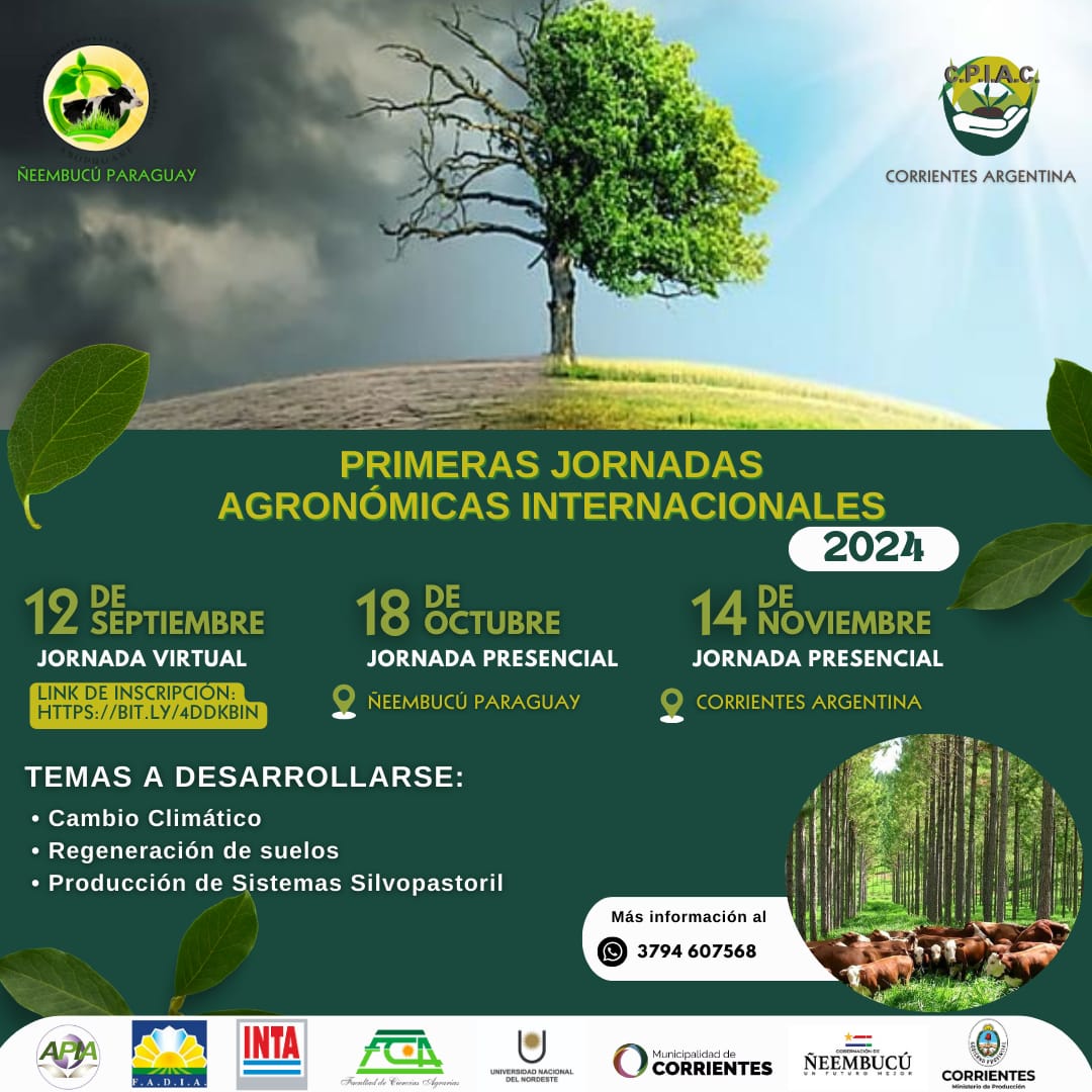 El Consejo Profesional de Ingeniería Agronómica de Corrientes (CPIAC) y la Asociación de Profesionales del Agro de Ñeembucú (ASOPROAÑE) tienen el placer de invitarlos a las primeras jornadas agronómicas Internacionales para compartir conocimientos sobre: