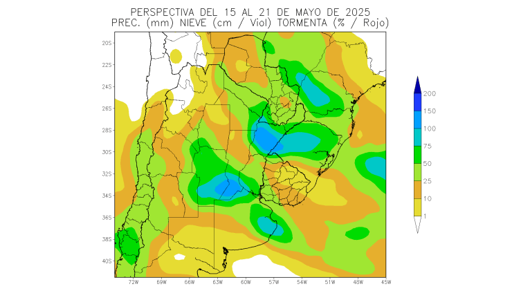 - Gran parte del NOA, el sur de la Región Pampeana y el nordeste del Uruguay recibirán precipitaciones escasas (menos de 10 mm), con focos aislados con valores moderados.