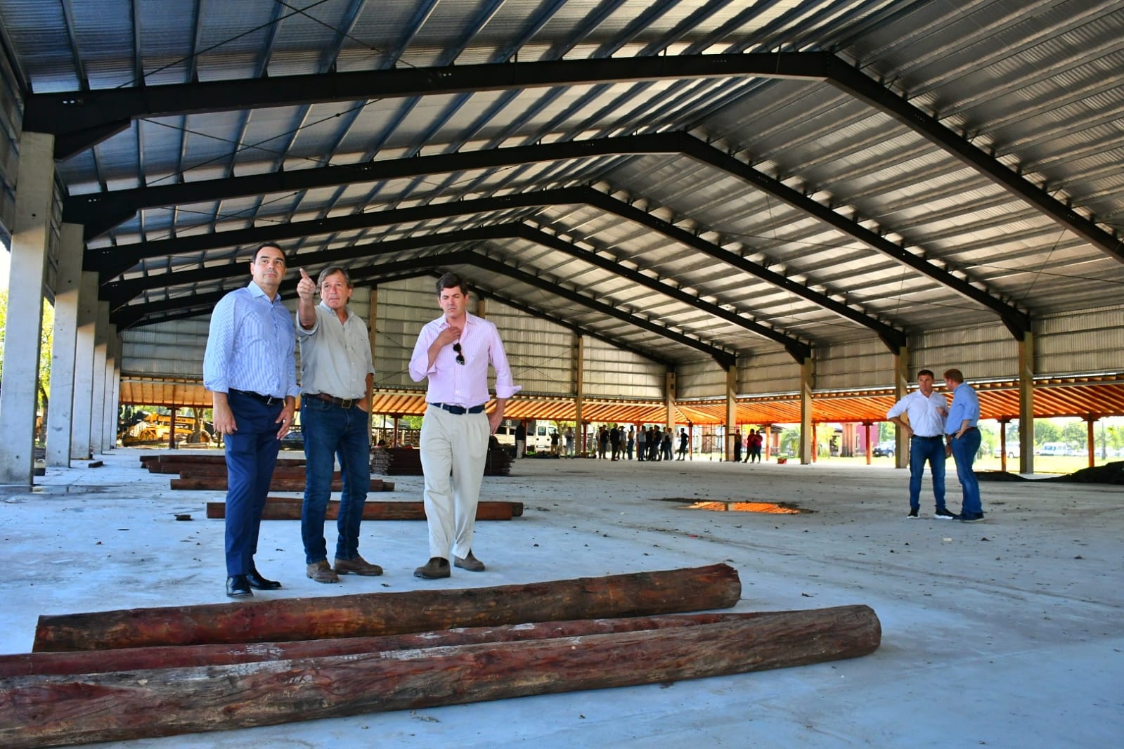 Previo al almuerzo desarrollado en el Salón Central de la Sociedad Rural de Corrientes, el gobernador Gustavo Valdés recorrió el nuevo galpón que tendrá 60 metros de largo por 30 de ancho, con galerías perimetrales de 5 metros en tres de sus lados, y será notablemente más alto que los otros dos ya existentes en el predio.